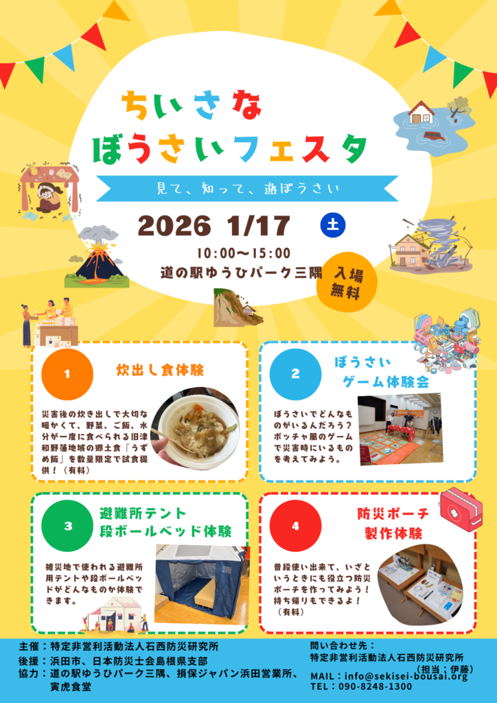 2026年1月17日(土)に道の駅ゆうひパーク三隅様で小さなぼうさいフェスタを開催します。